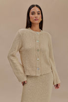 The MOIRA Oversized Boucle Cardigan is the epitome of cozy chic. Featuring a round neckline and drop shoulders, this cardigan offers a relaxed and comfortable fit. The straight sleeves and functional centre front button closure add to its classic appeal. Crafted from soft boucle knit fabric, this oversized cardigan provides warmth and texture, making it a perfect layering piece for any outfit. Whether paired with jeans for a casual look or the Moira Boucle Maxi Skirt for added elegance, the Moira Oversized Boucle Cardigan is a versatile and stylish addition to your wardrobe.