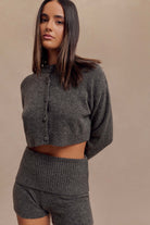 The SHELBY Knit Cardigan is the perfect blend of comfort and style, designed to enhance your casual wardrobe. Featuring a chic Drew neckline and a relaxed drop shoulder, this cardigan exudes a laid-back yet fashionable vibe. The functional button front closure allows for versatile styling, while the cropped length adds a trendy touch. Detailed with ribbing at the neckline, hem, and sleeve cuffs, the Shelby Knit Cardigan pairs beautifully with the Aubrey Knit Shorts, creating a coordinated look ideal for any relaxed day out or lounging at home.