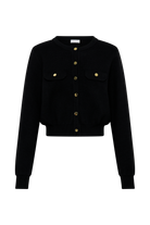 Introducing the TABITHA Knit Cardigan, a stylish and versatile addition to your wardrobe. With its round neckline and long sleeves, this cardigan offers a classic silhouette with a modern twist. The, centre front placket, and hem adds visual interest and dimension to the design. Featuring a functional centre front button closure adorned with gold buttons, it exudes elegance and sophistication. Complete with front mock pockets with button detail, this cardigan combines style with practicality. Crafted from unlined knit fabric, it ensures comfort and ease of wear. Whether layered over a dress for a chic ensemble or paired with jeans for a casual look, the Tabitha Knit Cardigan is perfect for adding a touch of charm to any outfit.