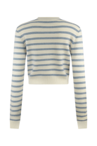 The TANNER Striped Knit Cardigan is a timeless staple with a modern edge. Designed with a round neckline and a button-front closure, this cropped silhouette offers a chic and structured look. The bold striped knit adds a refined touch, while non-functional pocket details with button accents enhance its polished appeal. Perfect for layering over dresses, pairing with high-waisted trousers, or styling with denim, this cardigan is an effortless way to elevate any outfit.