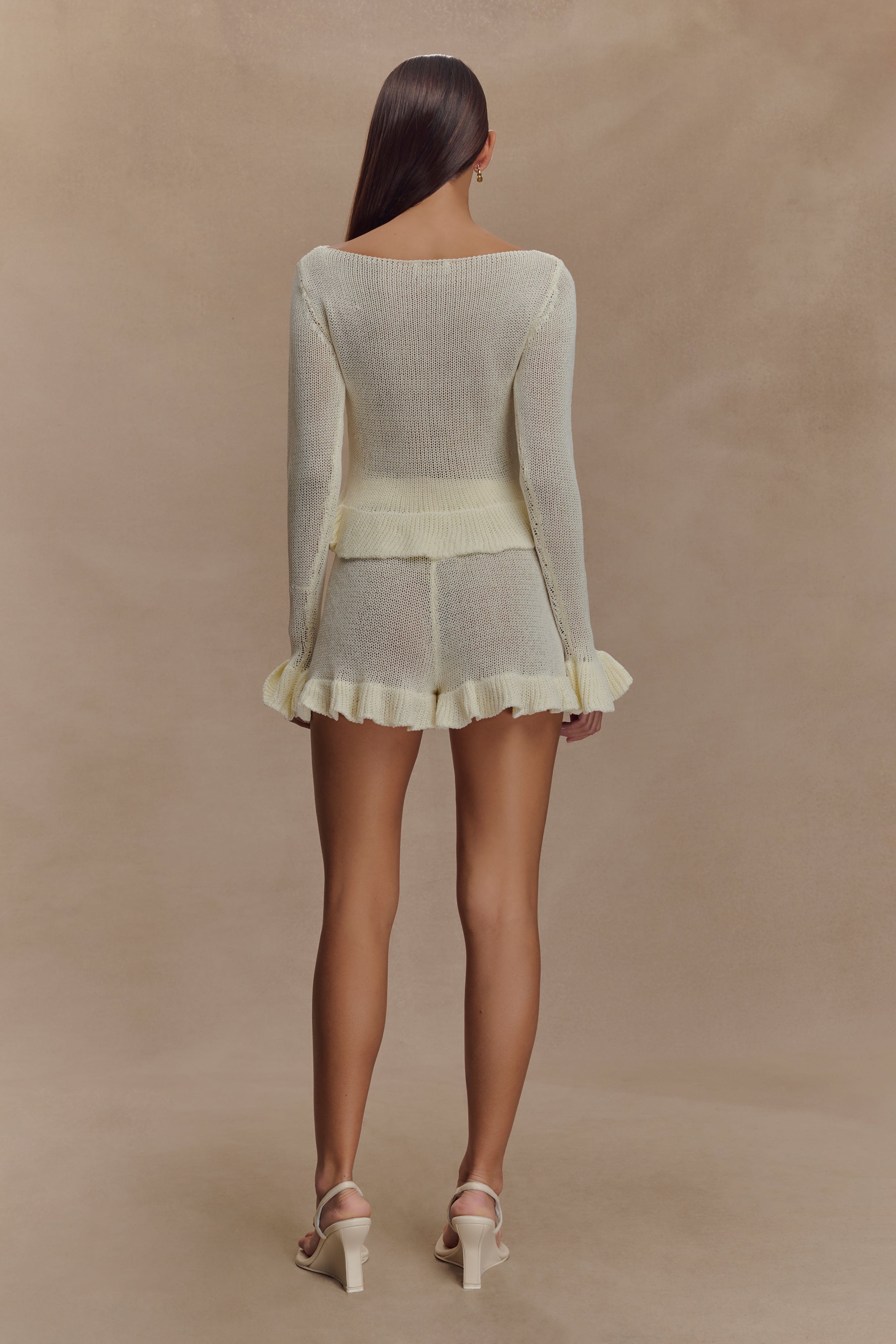 Amy Pointelle Bell Sleeve Cardigan - Lemon