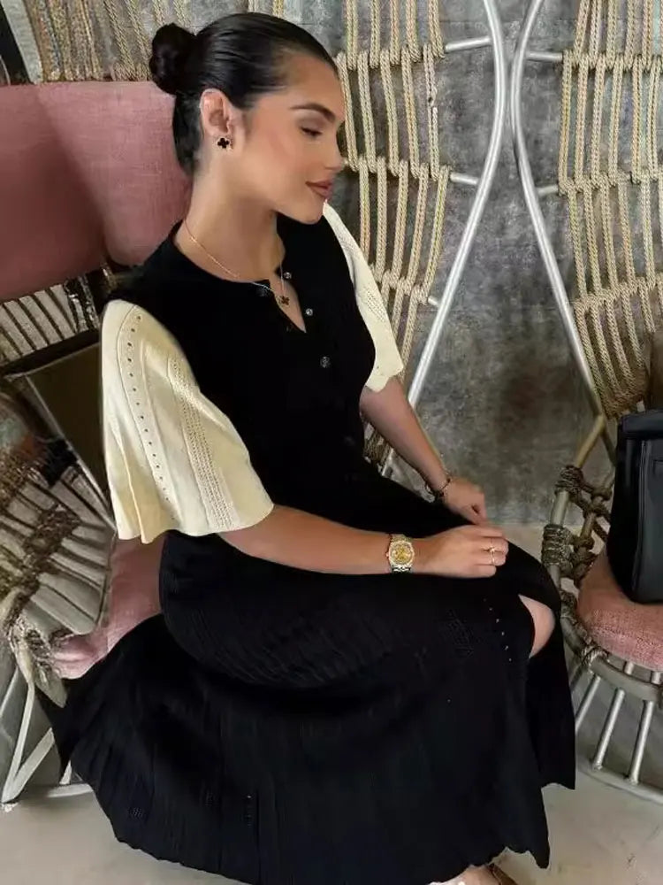 Lina - Knitted Patchwork Midi Dress