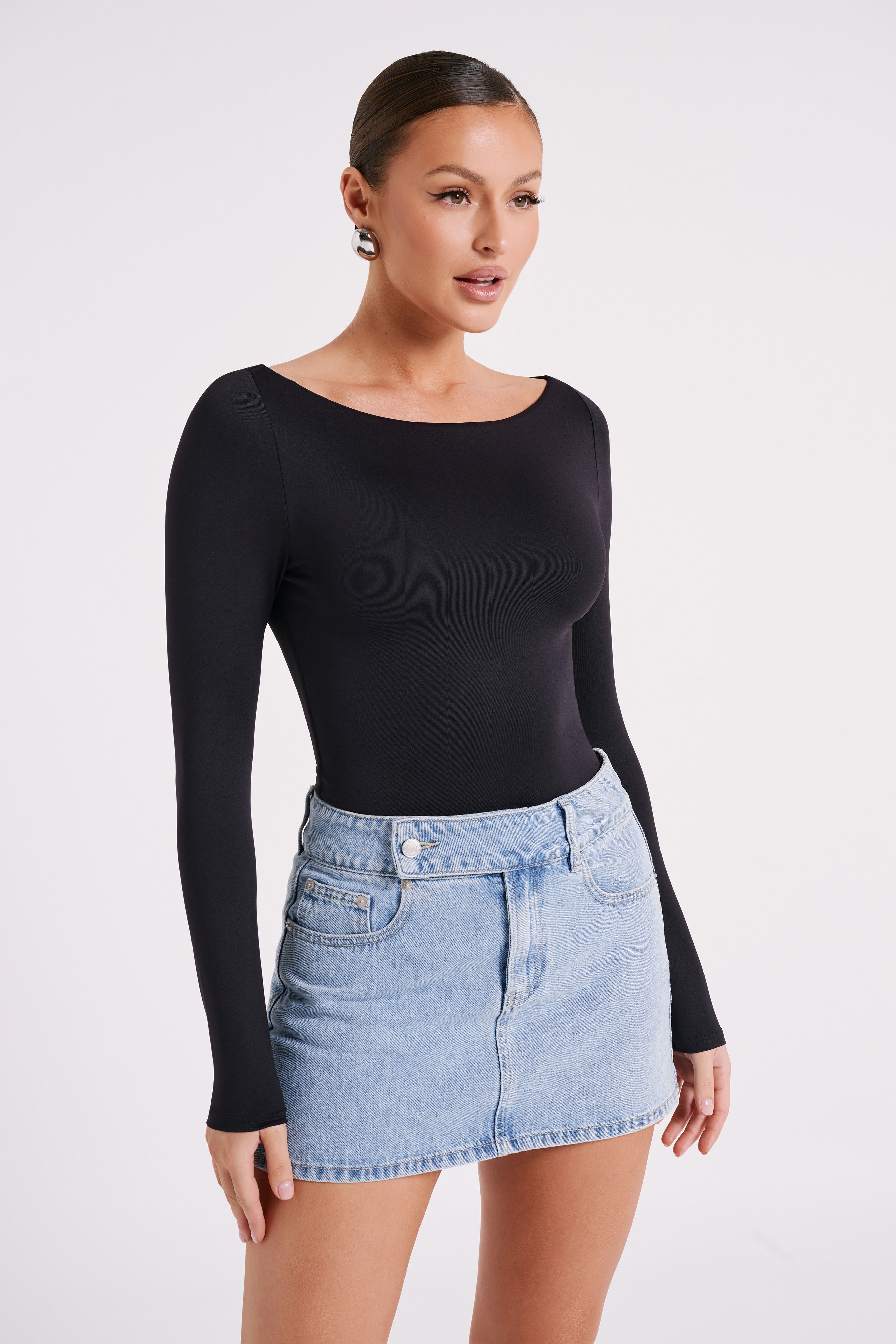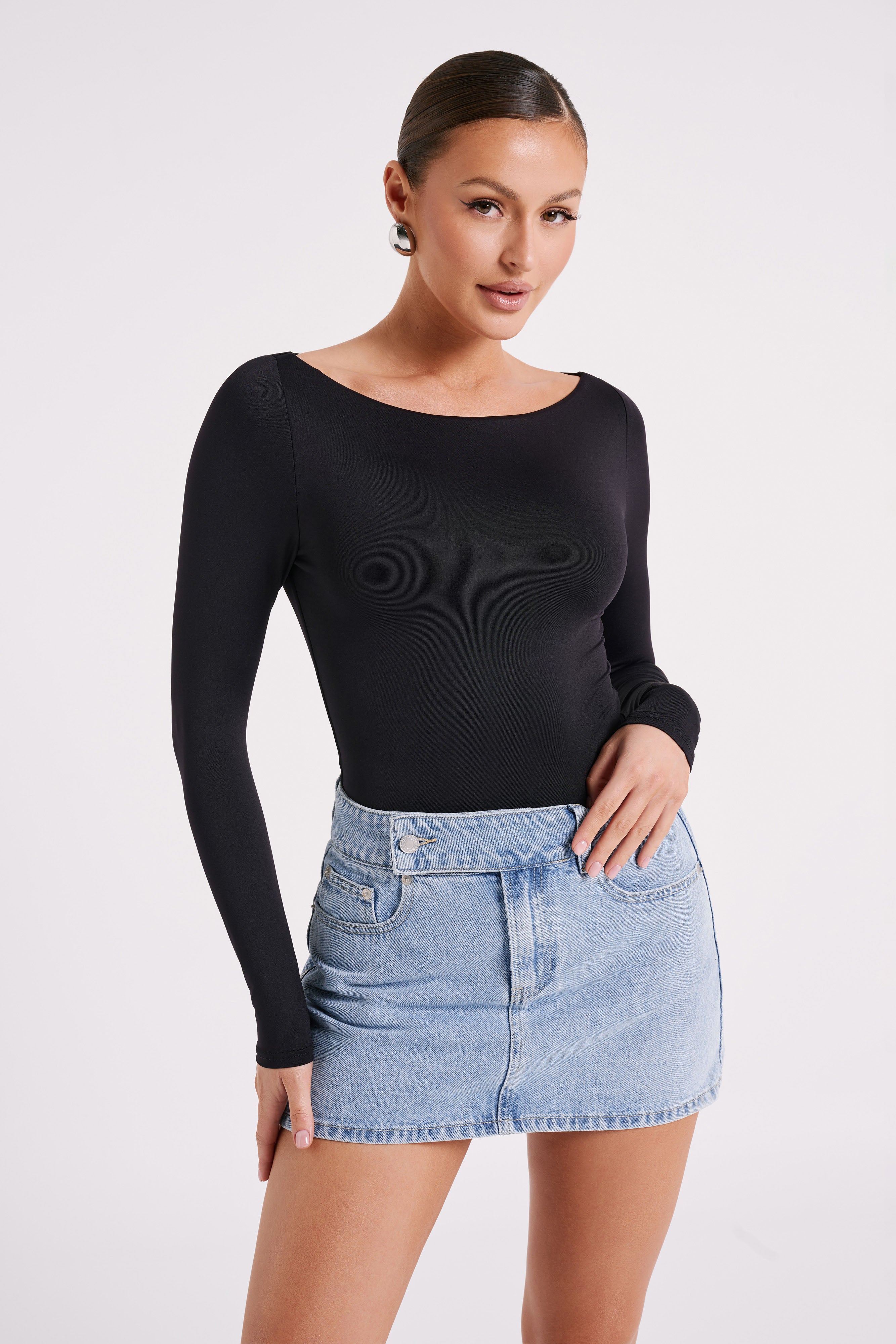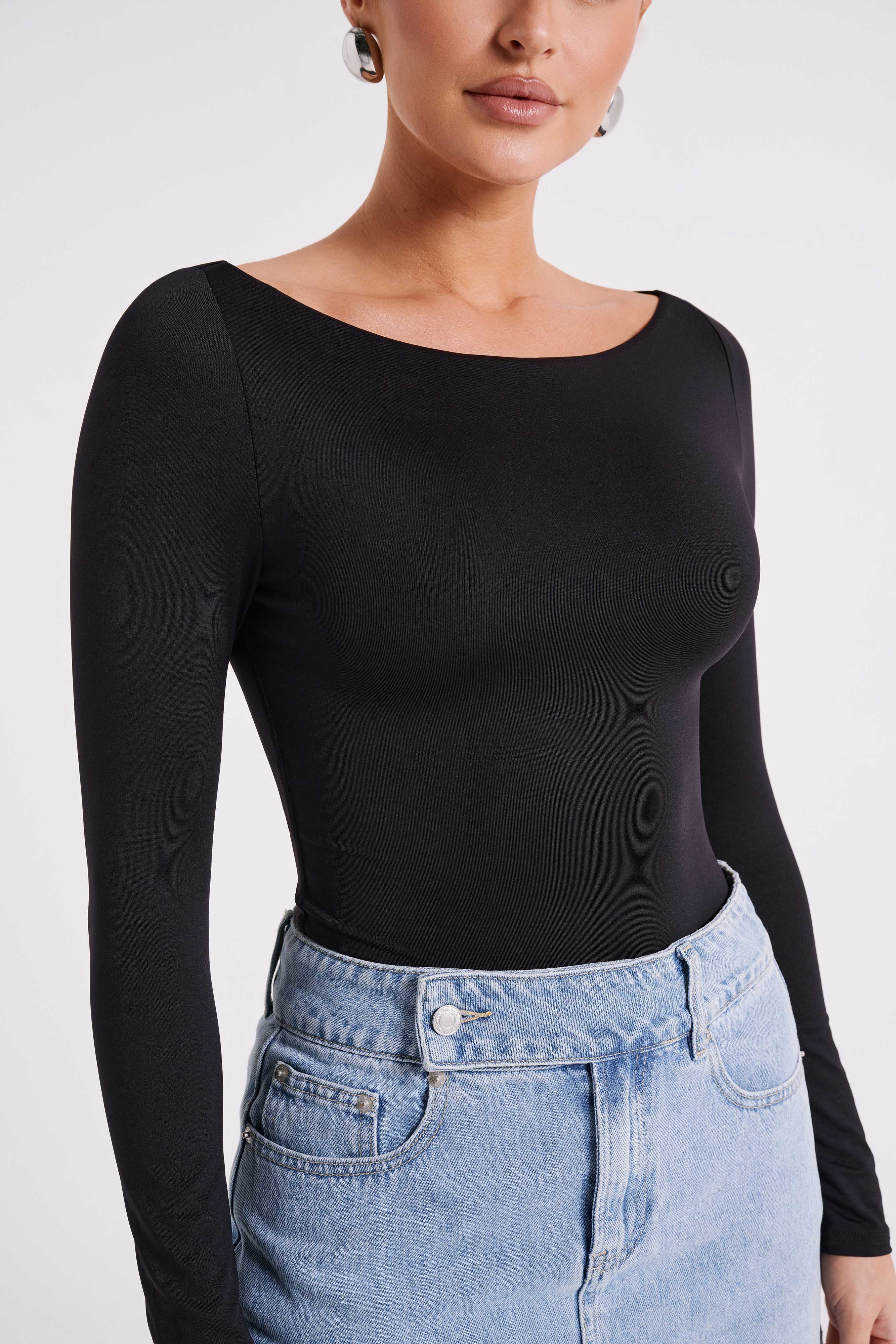 Cate Boatneck Long Sleeve Bodysuit - Black