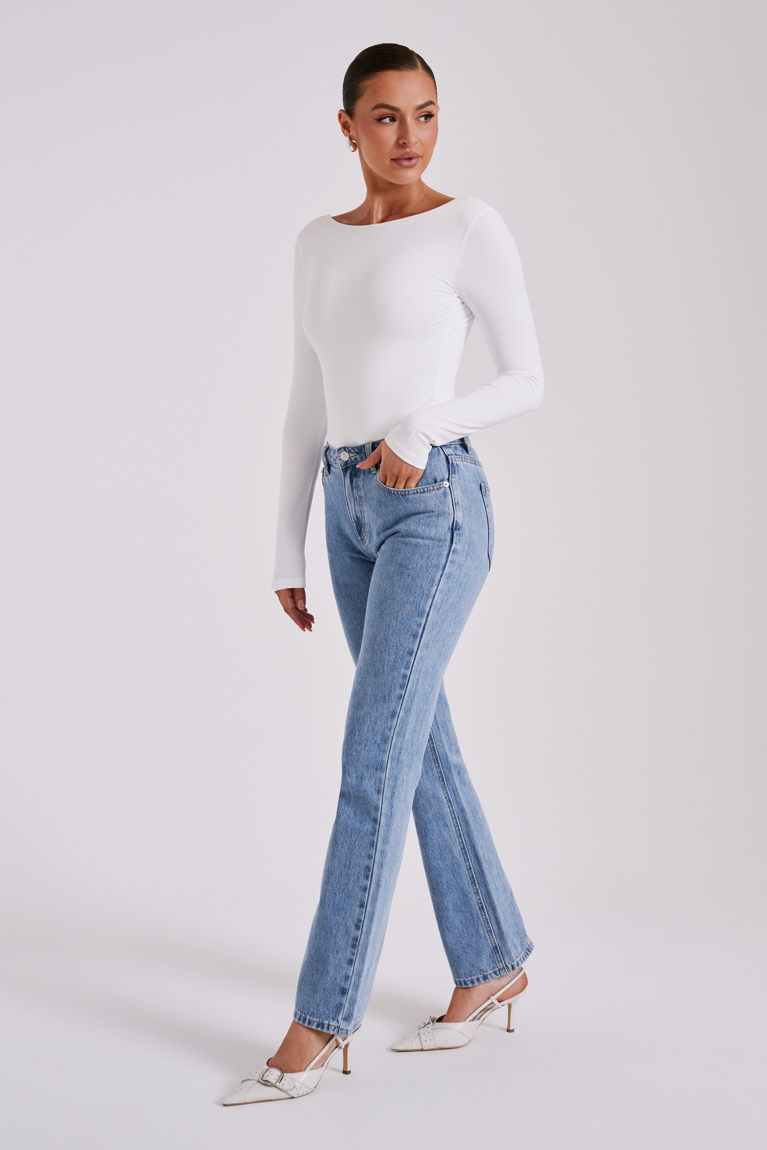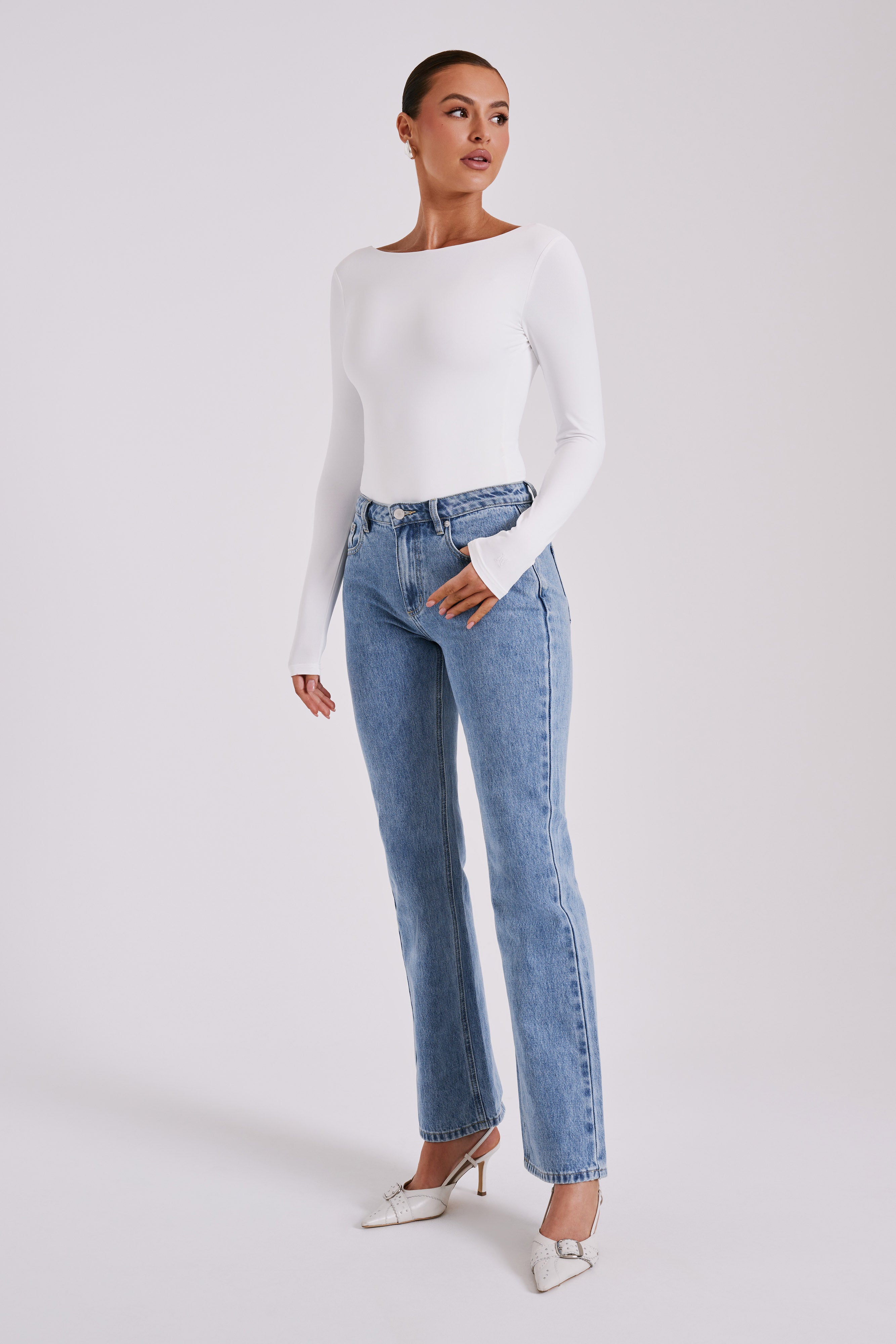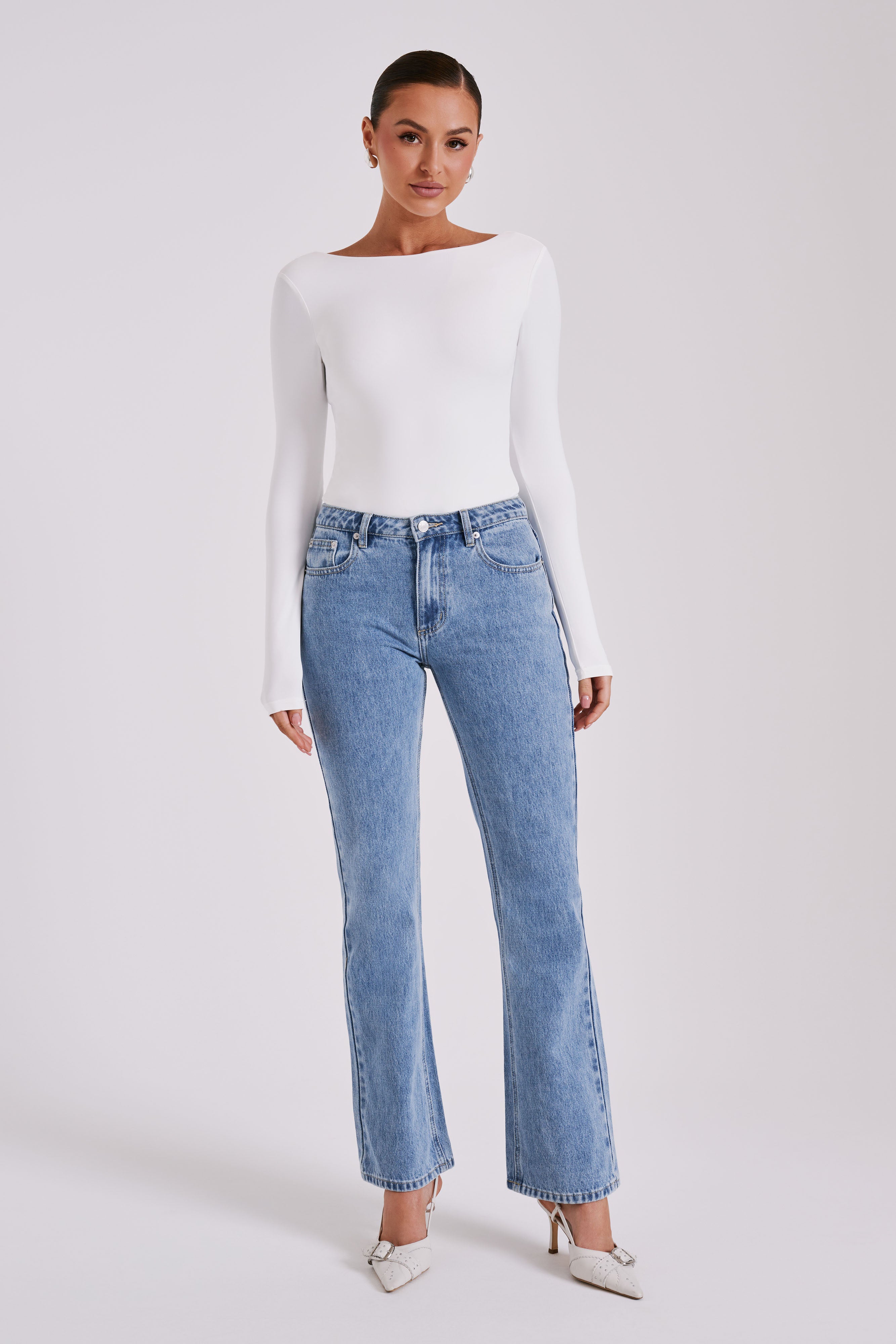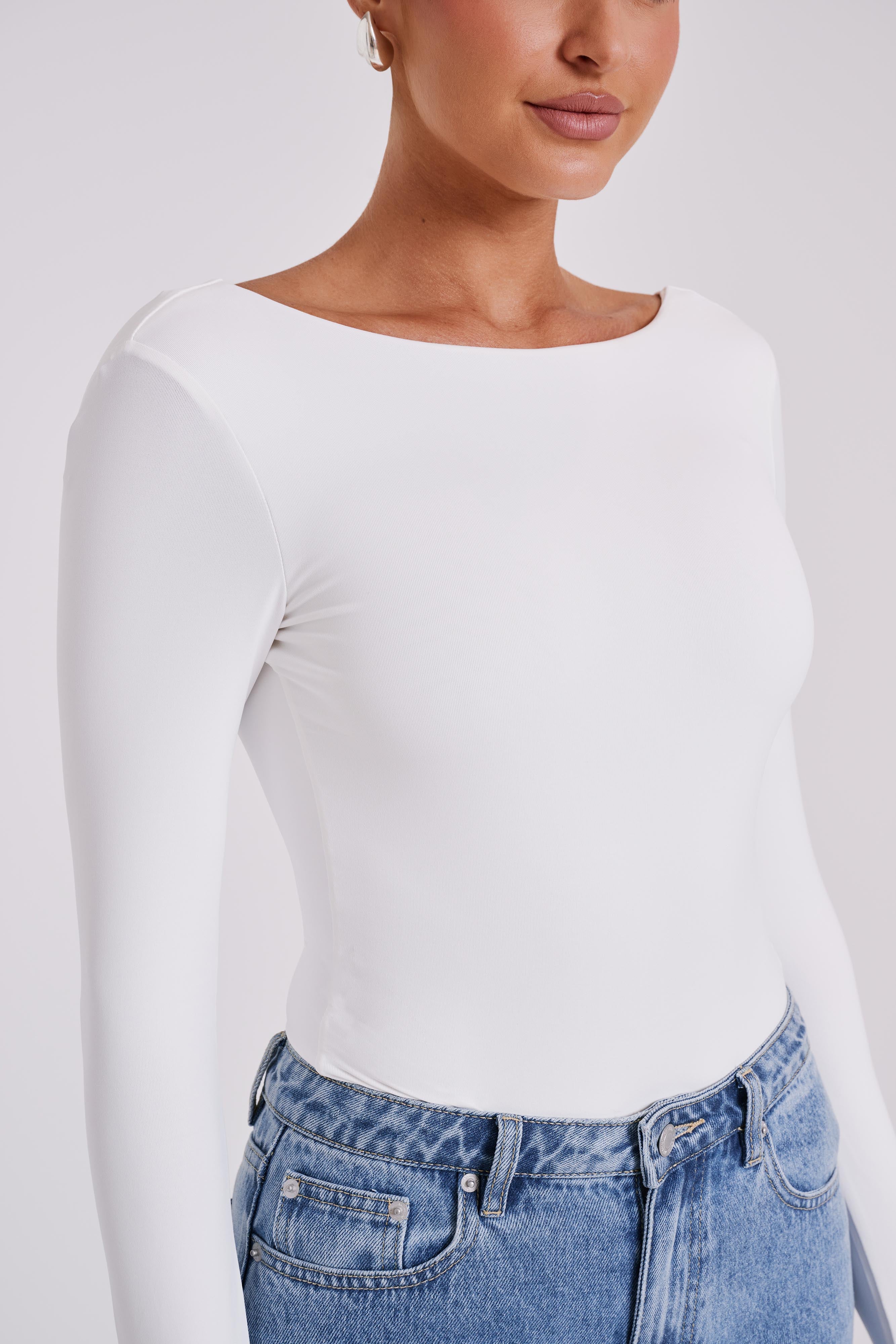 Cheyenne Long Sleeve Plunge Back Bodysuit - White