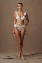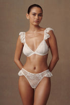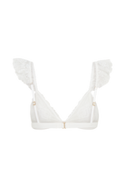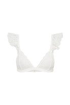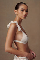 Meet the ANNISTON Lace Frill Triangle Bralette in White, a charming addition to your lingerie collection. Boasting a V neckline and adjustable shoulder straps, this bralette offers both style and support. The shoulder frill detail adds a touch of femininity and flair, while the elastic underbust ensures a comfortable fit. Complete with a centre-back clasp, it provides ease of wear and a secure closure.