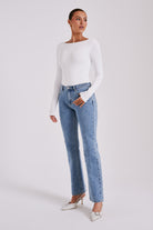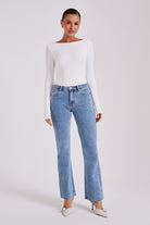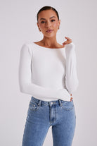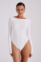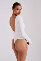 Cheyenne Long Sleeve Plunge Back Bodysuit - White