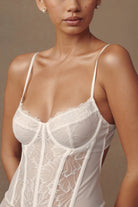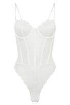 Experience the epitome of allure and comfort with the DAISY Lace Mesh Bodysuit , featuring elasticated adjustable straps for a personalised fit that ensures both support and style. Revel in the delicate fusion of lace and mesh panelling that exudes sophistication and sensuality in equal measure. With a lower back cut out, this piece adds an unexpected element of allure, while the centre back hook-and-eye closure ensures a seamless fit. Flaunt your curves with confidence in the bodycon fit, offering a flattering silhouette, while the thong coverage adds a touch of playfulness. Elevate your lingerie collection with this exquisite ensemble that perfectly balances elegance and seduction.