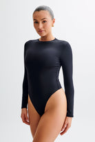 Delilah Long Sleeve Crew Neck Bodysuit - Black