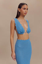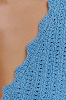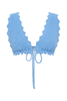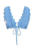 JADIA is a contrast crochet bralette tha features a V neckline at the front, lined with dark scalloped edging and a string tie at the back. The straps are adjustable and kept in place with a single thin back tie, so it can fit and flatter any type of body it's put on. Pair it with a maxi skirt like the Jadia Crochet Maxi Skirt for the full look.