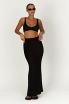 A bralette is a wardrobe essential that every girl should have at the ready, but MARY is definitely something else! Pretty, perky, and playful, Mary is anything but your basic top. Her low neckline, open back, and curve-hugging fabric has her outlining your assets and highlighting your shape. Feel sleek and alluring, matching her with our Mary Knit Maxi Skirt to complete the look.