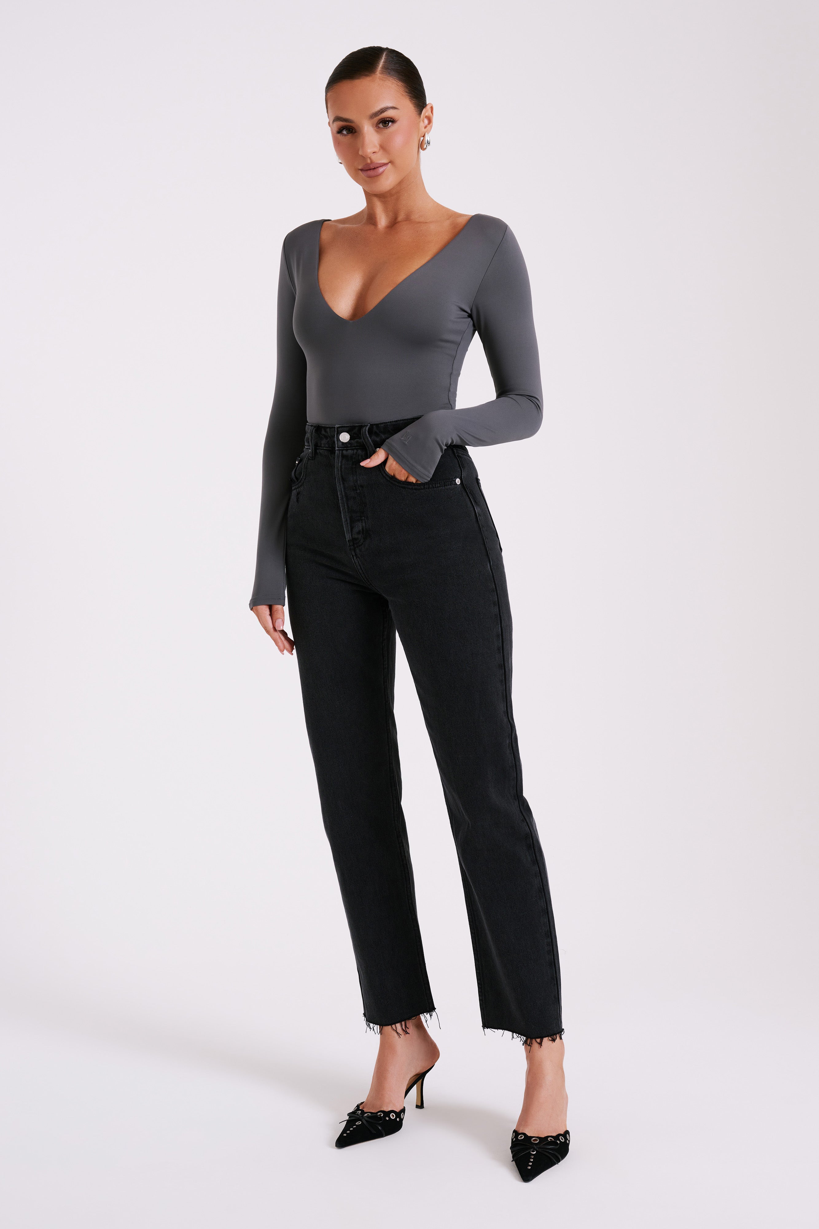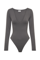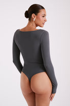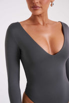 Nia Long Sleeve V Neck Bodysuit - Charcoal