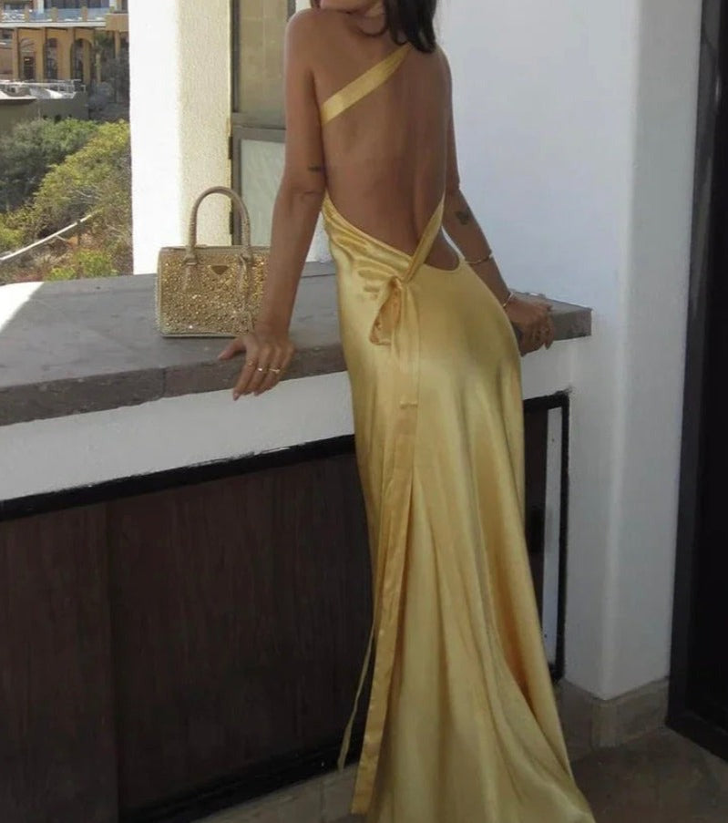 Asyntha - One-Shoulder Bell Sleeves Maxi Dress
