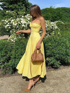 Step into the spotlight with the Elandra Lemon Corset Fit Midi Dress, a stunning blend of bold color and feminine structure. Featuring a corset-style bodice that flatters your figure and a vibrant lemon hue, this dress is the perfect choice for making a statement at summer parties, brunches, or evening soirees.