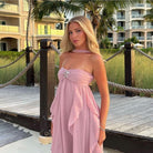 The Zylena Irregular Ruffle Lace Maxi Dress brings a touch of whimsical elegance to any event. With its unique design and detailed lacework, this dress is the perfect choice for those looking to make a graceful and bold style statement.