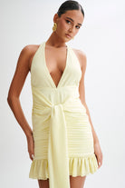 Ambrosi Satin Chiffon Mini Dress - Lemon Sherbet