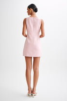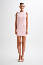 ANGELA is a sleeveless mini dress with a clean boat neckline and A-line skirt. Crisp and modern, the front features contoured seam lines for a fresh, fitted look. The dress closes with an invisible zip to keep the silhouette smooth, sleek, and sexy. A beautiful blend of stylish and classy, this dress is a versatile wardrobe essential. Accessorise with an oversized blazer, clean earrings, and elegant heels like Geneva Square Diamante Mules.
