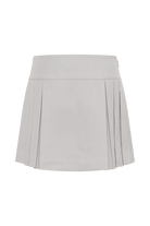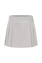 The ANGIE Pleated Buckle Mini Skirt is a playful yet polished addition to your wardrobe, designed to turn heads. This skirt features a wide waistband with a striking buckle detail, adding a touch of sophistication and a flattering fit. The side zip and hook-and-eye closure ensure a seamless silhouette, while the pleated design and mini length create a dynamic, feminine shape. For a chic daytime look, pair it with the Aspen Suiting Vest, or elevate the ensemble with the Bellamy Cinched Blazer for a sleek, tailored finish that's perfect for any occasion.