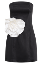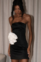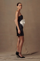The BERNADETTE Strapless Rose Mini Dress presents a captivating silhouette for your next special occasion. Featuring a strapless design and bodycon silhouette, it offers a sleek and elegant look. Lined for comfort, the dress showcases ruched detailing at the waist for a flattering fit. Delicate flower appliqués add a romantic touch, while a side zip ensures easy wear. Elevate your ensemble with the Bernadette, epitomising timeless charm and sophistication.