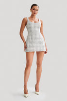 Beth Tweed Mini Dress - White Check