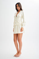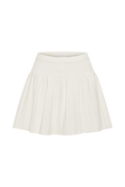 The BEVERLY Knit Pleated Mini Skirt is designed to make a stylish statement. Featuring a high-waisted fit and a flat yoke, this skirt offers a flattering silhouette. The ruched lower skirt adds a touch of texture and movement, while the mini length keeps it playful and chic. Crafted from a soft, unlined knit, it ensures comfort throughout the day.