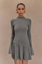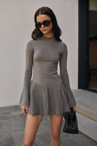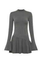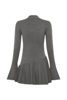 Introducing the BLAIR Knit Mini Dress with Pleats, a perfect blend of contemporary style and effortless elegance. This dress features a chic high neckline and long sleeves, ideal for transitional weather. The asymmetrical skirt panel seam adds a modern touch, while the pleated lower skirt creates beautiful movement. Flared sleeve hems enhance the unique silhouette, making this dress a standout choice. With its playful mini length, it pairs beautifully with your favourite ankle boots or heels, making it perfect for both day and evening wear.