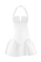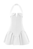 The CALIPSO Halter Mini Dress is a modern take on timeless elegance. Designed with a sophisticated halter neckline and a folded V-split detail, this dress exudes understated charm. The drop waist with a curved seam creates a flattering, elongated silhouette, while soft gathers in the skirt add graceful movement. Princess seam lines enhance the fit, and the invisible back zipper ensures a seamless finish. Partially lined for a lightweight feel, this dress is perfect for elevated daywear, cocktail events, or romantic evenings.