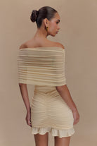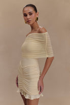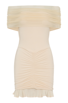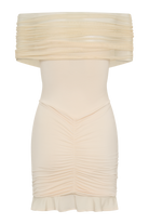 Caspian Slinky And Mesh Off Shoulder Mini Dress - Ivory