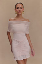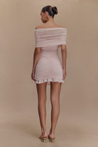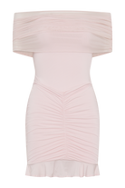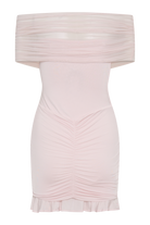 Caspian Slinky And Mesh Off Shoulder Mini Dress - Pale Pink