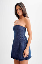 Cecily Strapless Denim Mini Dress - Dark Blue