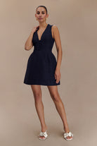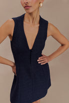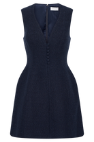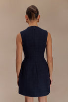 Danna Boucle Mini Dress With Pleats - Midnight Blue