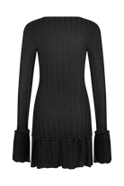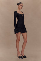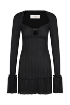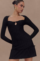 Daphne Pointelle Long Sleeve Mini Dress - Black
