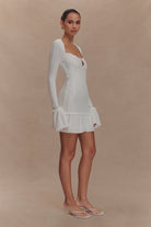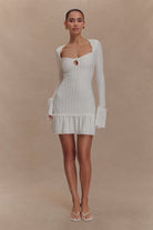 Daphne Pointelle Long Sleeve Mini Dress - Ivory