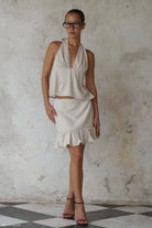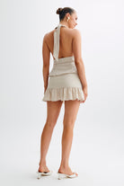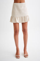 Delfina Linen Mini Skirt With Ruffle - Natural