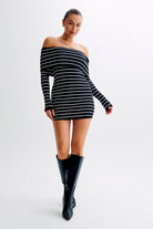 Indulge in the allure of the DOMINICA Off Shoulder Knit Mini Dress, a captivating blend of sophistication and allure. Designed to accentuate your curves, this dress features an off-the-shoulder neckline that exudes effortless charm, with an overlay gracefully draping over the arms for a touch of elegance. The long sleeves offer a sleek silhouette, while the bodycon fit flatters your figure with undeniable allure. Crafted from ribbed fabrication, this dress showcases both comfort and style, while its unlined design maintains a lightweight feel. Perfect for making a statement, whether at a soirée or an intimate gathering, the Dominica Off Shoulder Knit Mini Dress ensures you stand out with timeless grace and poise.