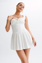 Donna Cotton Ruched Mini Dress - White