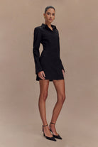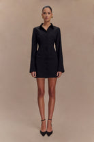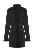 The DORIAN Fitted Shirt Mini Dress exudes timeless elegance with its classic design and sophisticated details. Featuring a collared neckline and a functional centre front button closure, this dress offers a tailored, polished look. The long sleeves with flared cuffs bring a modern edge, while the mini length adds a playful yet polished touch. A centre back vent ensures ease of movement, and the unlined construction offers a lightweight feel. This dress strikes the perfect balance between chic and sophisticated, making it ideal for both stylish nights out and elevated daytime events.
