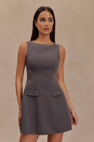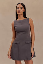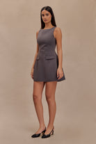 Evanna Sleeveless Suiting Mini Dress - Charcoal Grey