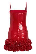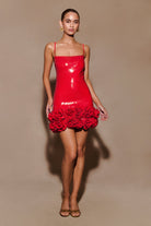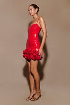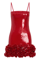 Exude sparkle and charm in the FAYE Sequin Flower Mini Dress, a dazzling piece designed to make a statement. Designed in a flattering bodycon silhouette, this dress hugs your curves and sparkles with its all-over sequin fabrication. The delicate sequin roses along the hem add a touch of romantic flair, making this mini dress a showstopper. Featuring adjustable straps for a customisable fit and a centre-back zip for easy dressing, this dress is as comfortable as it is stunning. Whether you're dancing the night away or attending a special event, this dress ensures you'll shine in style.