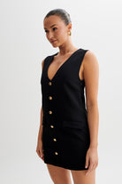 Effortlessly blending sophistication with modern flair, the FLORENTINA Sleeveless Suiting Mini Dress is a chic addition to any wardrobe. The V neckline adds a touch of elegance, while the relaxed fit and boxy silhouette offer a comfortable and on-trend look. Lined for quality and comfort, this dress is both stylish and practical. The non-functional centre front buttons add a unique and eye-catching detail, enhancing the overall design. With its mini length, this dress is versatile and ideal for both casual outings and more formal events. Perfect for those looking to make a fashion statement, the Florentina Sleeveless Suiting Mini Dress exudes contemporary style and sophistication.