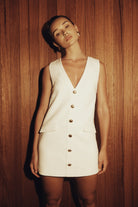 Florentina Sleeveless Suiting Mini Dress - Ivory
