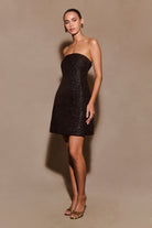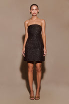 The GALA Strapless Tweed Mini Dress is crafted to bring elegance and charm to every occasion. With its strapless neckline and flattering fit-and-flare shape, this mini dress accentuates your silhouette while adding a playful touch. The classic tweed fabric gives a sophisticated edge, perfect for elevating your style. A centre-back zip completes the look, ensuring a seamless and comfortable fit. Whether it's a day event or an evening out, this dress guarantees you'll exude effortless grace and make a lasting impression.