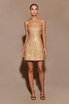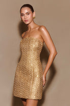Gala Strapless Tweed Mini Dress - Gold