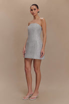 The GALA Strapless Tweed Mini Dress is crafted to bring elegance and charm to every occasion. With its strapless neckline and flattering fit-and-flare shape, this mini dress accentuates your silhouette while adding a playful touch. The classic tweed fabric gives a sophisticated edge, perfect for elevating your style. A centre-back zip completes the look, ensuring a seamless and comfortable fit. Whether it's a day event or an evening out, this dress guarantees you'll exude effortless grace and make a lasting impression.