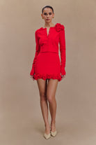 The GIANNA Knit Mini Skirt with Flowers is your new go-to for playful elegance. Featuring a comfortable elastic waist, this bodycon mini skirt hugs your curves in all the right places, ensuring a flattering fit. The charming floral detailing at the hem adds a delightful touch of femininity, making it perfect for dressing up or down. With its unlined design, the skirt is lightweight and breezy, ideal for warm days or layering with your favourite pieces. Pair it with the Gianna Knit Cardigan with Flowers for a coordinated look that exudes effortless style.