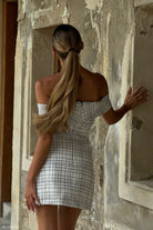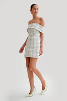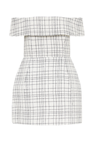 Helena Tweed Off Shoulder Mini Dress - White Check