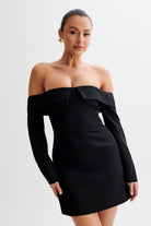 Hugo Suiting Off Shoulder Mini Dress - Black