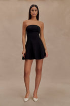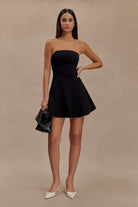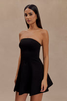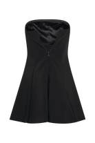 The INDIANA Strapless Suiting Mini Dress is a striking and sophisticated choice, perfect for making a bold fashion statement. Featuring a strapless design and a mini length, this dress highlights a fitted bodice that accentuates your curves. The PU binding and bow detail add a chic touch of elegance, while the centre back zip ensures a secure fit. The flare skirt, enhanced with godets, creates a graceful, flared silhouette that moves beautifully. Ideal for formal events or stylish evenings, the Indiana Dress combines classic tailoring with modern flair for a truly standout look.