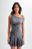 Irving Off Shoulder Slinky Mini Dress - Dark Charcoal