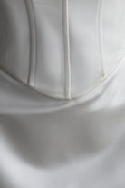 The ISABEL Satin Corset Mini Dress is a flawless fusion of structure and sophistication. Designed with wide straps and a gathered bust detail, this mini dress accentuates the figure with a corseted, boned waist for a sculpted fit. The structured skirt adds a refined touch, while the functional back button and elastic loop detail create a striking design element. Finished with a secure back zip, hook-and-eye closure, and internal waist stay for added support, this dress is perfect for elevated evenings, special occasions, or modern bridal celebrations.