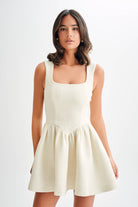 The JENNIFER Boucle Mini Dress is the epitome of chic and modern elegance. This dress features a sophisticated square neckline and princess panel seams that create a flattering silhouette. The shaped waistline accentuates your figure, leading to a playful gathered skirt that falls to a mini length. With a convenient side zipper for easy wear, the Jennifer Boucle Mini Dress is perfect for any stylish occasion.
